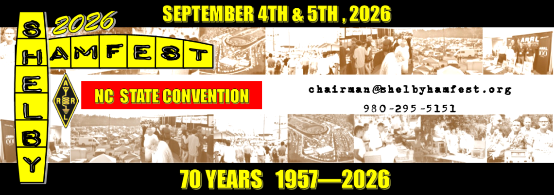We’re excited to invite you to join us September 4 & 5, 2026 for the 70th Annual Shelby Amateur Radio Club Hamfest—a celebration of amateur radio,  community, and fun!  This year, we’ve got something for everyone: